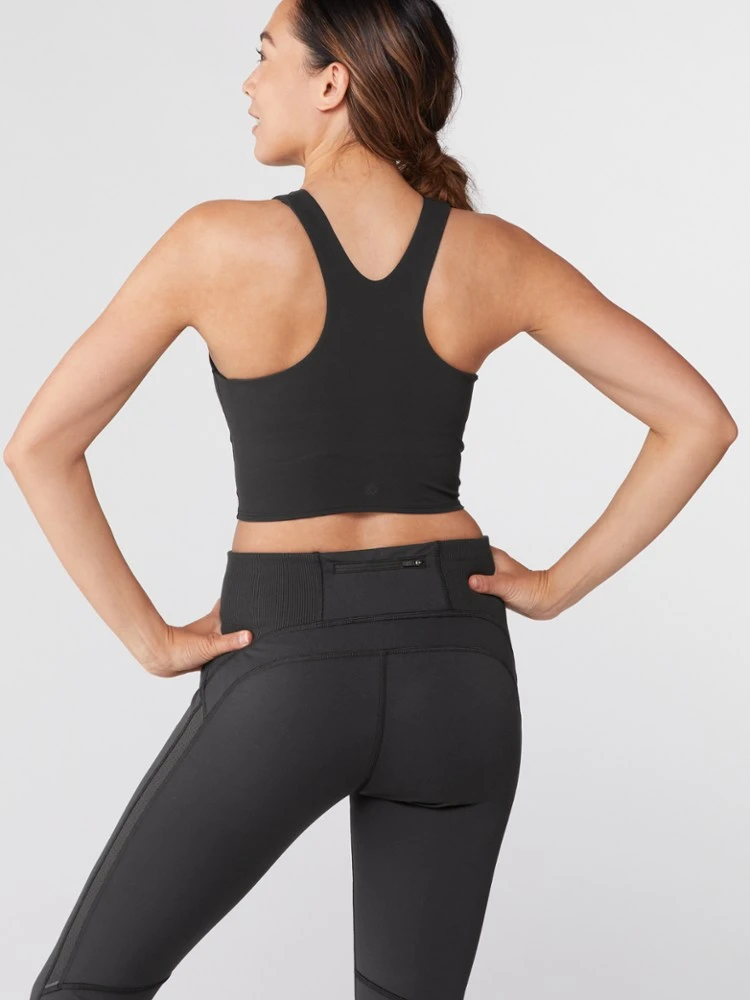 Take your workout away from the studio and into the park. With breathable fabric and low-impact support, the Athleta Conscious Crop top for A–C cup sizes keeps you breezy during summer yoga.