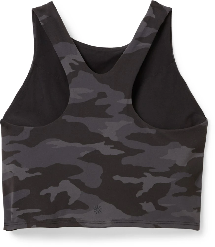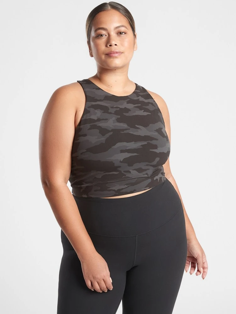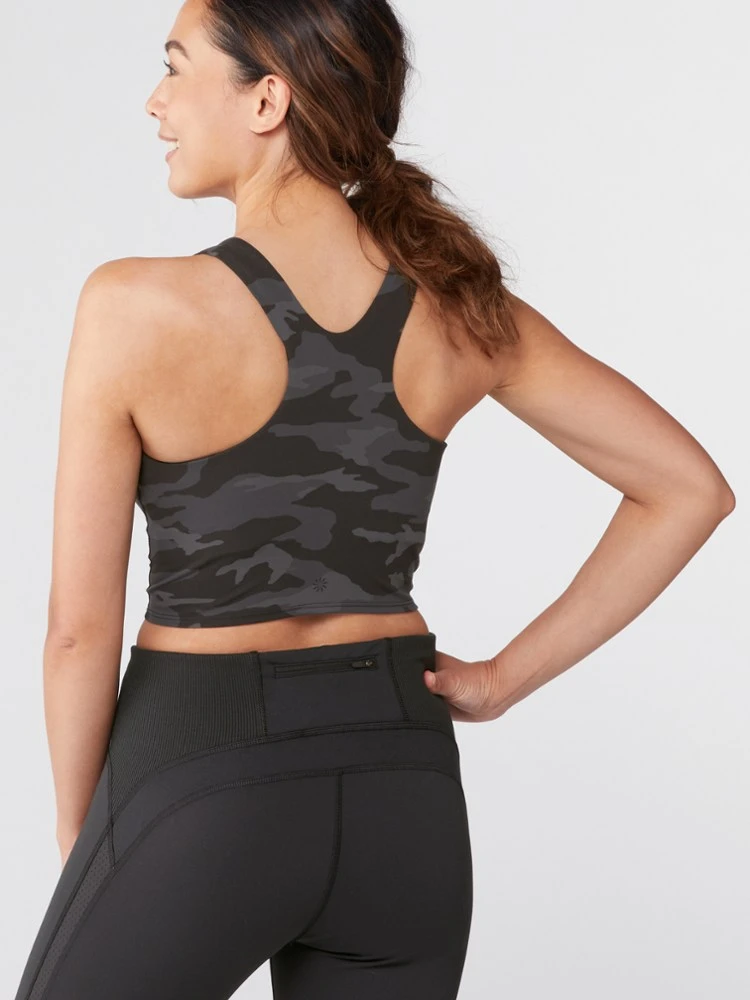 Take your workout away from the studio and into the park. With breathable fabric and low-impact support, the printed Athleta Conscious Crop top for D–DD+ cup sizes keeps you breezy during summer yoga.