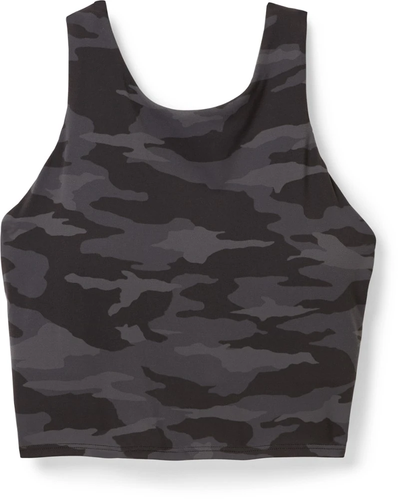 - High-coverage crop silhouette and racerback design provide airflow and mobility