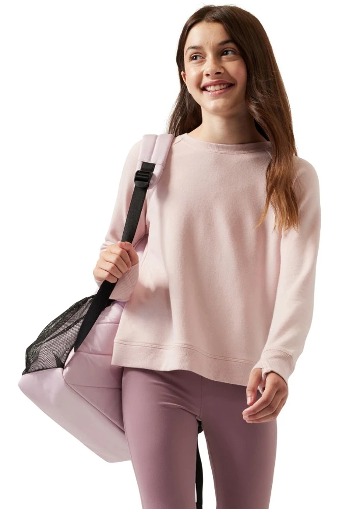 Send them off to school, practice or play in the cozy comfort of the girls’ Athleta Cross Your Finger sweatshirt. It’s designed with a tulip-hem back detail for an unexpected twist.