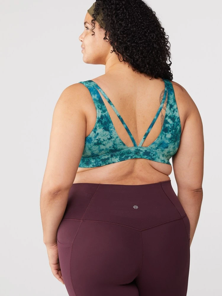Ideal for all your favorite low-impact studio classes—yoga, barre, Pilates—the Athleta Exhale Printed Bra for D–DD+ cup sizes has clever straps to prevent it from digging into your neck and shoulders.