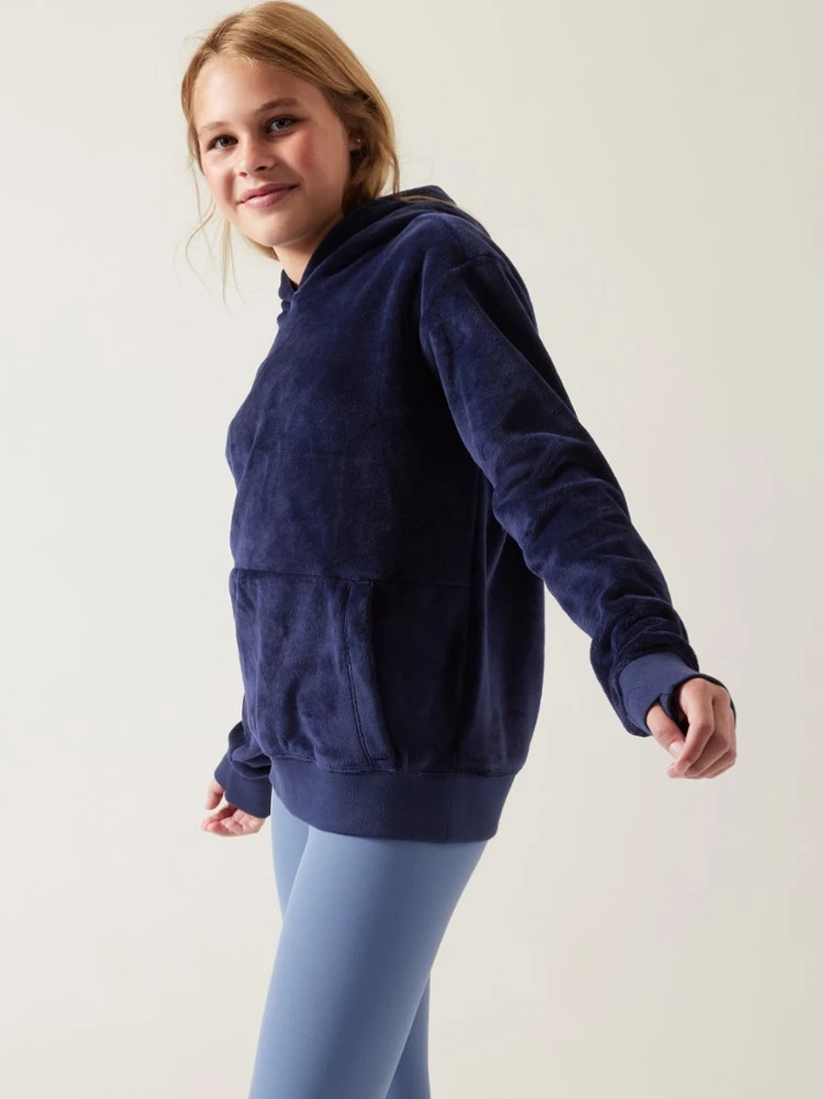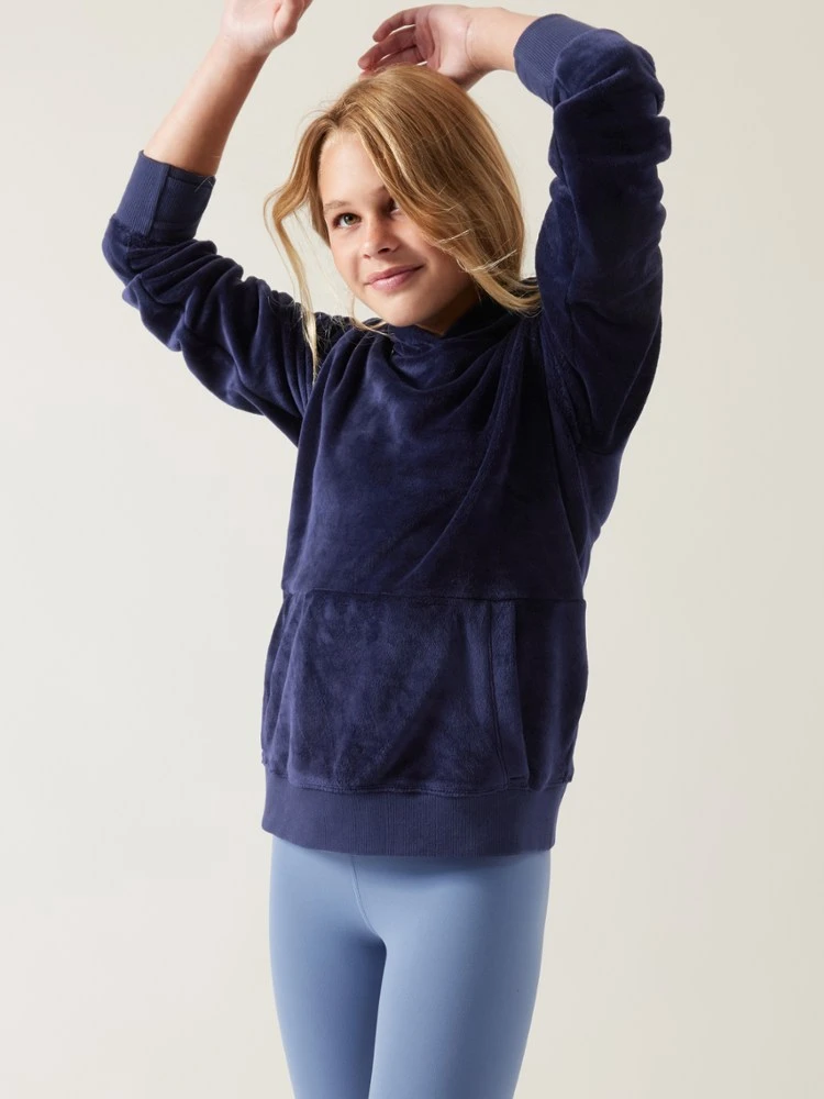 True to its name, the girls’ Athleta Feelin’ Great hoodie is soft and plush on the inside and outside, keeping kids extra-cozy and comfortable during school, practice and outdoor play.