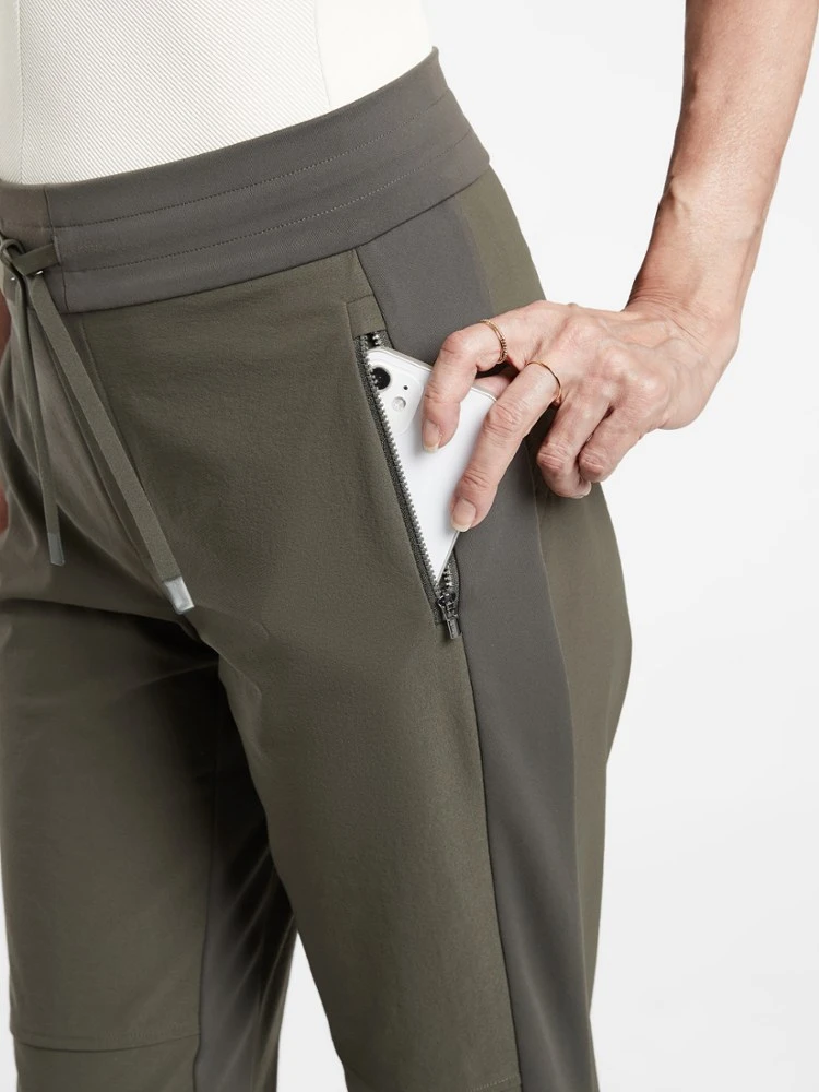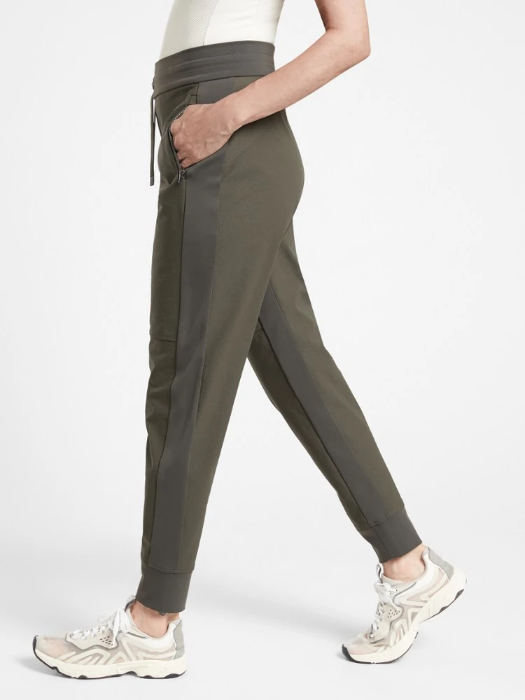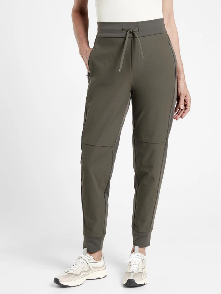 Whether you’re hiking at sea level or higher, the women’s Athleta Headlands Hybrid Trek Jogger pants help keep you comfortable with abrasion-resistant and water-repellent fabric.
