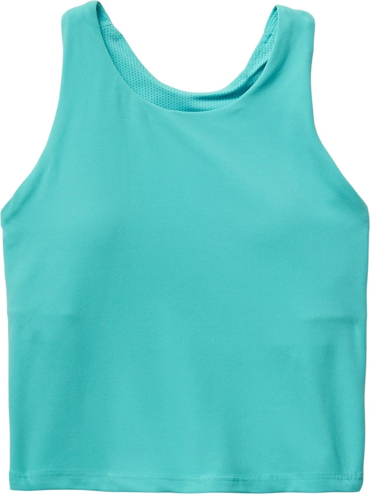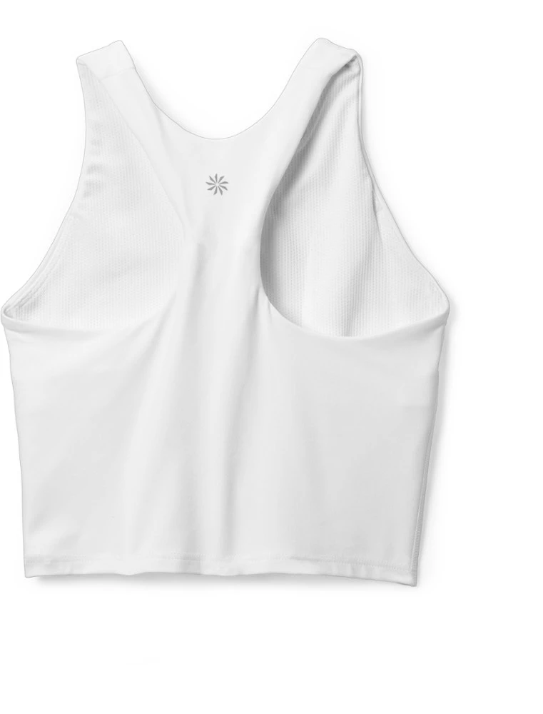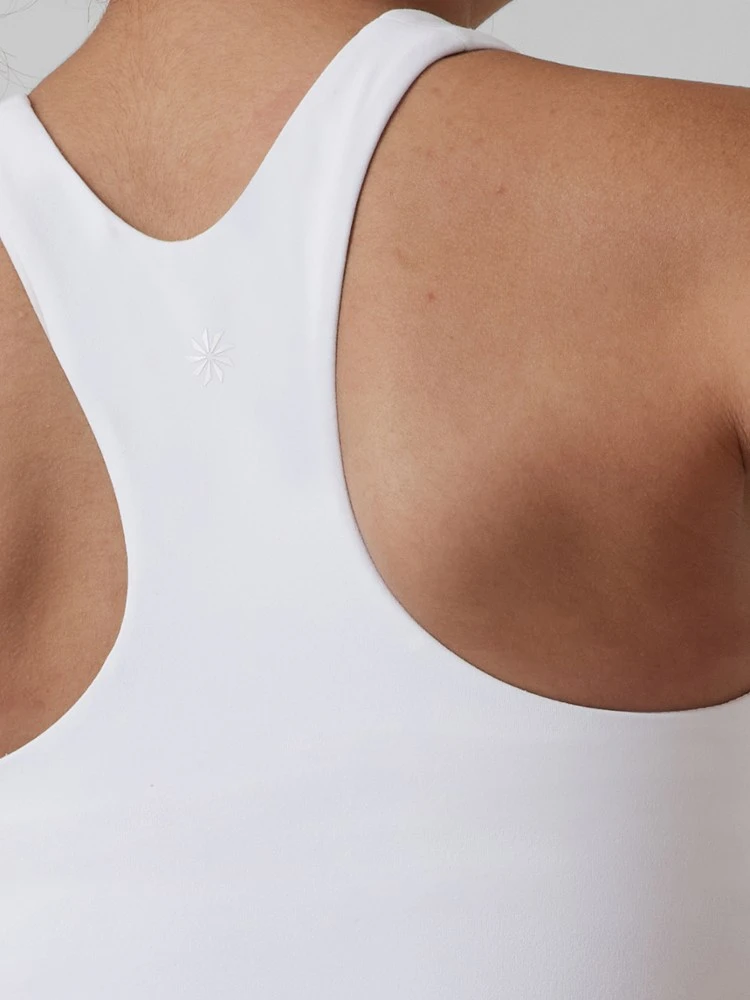 - High-neck racerback for comfort and coverage