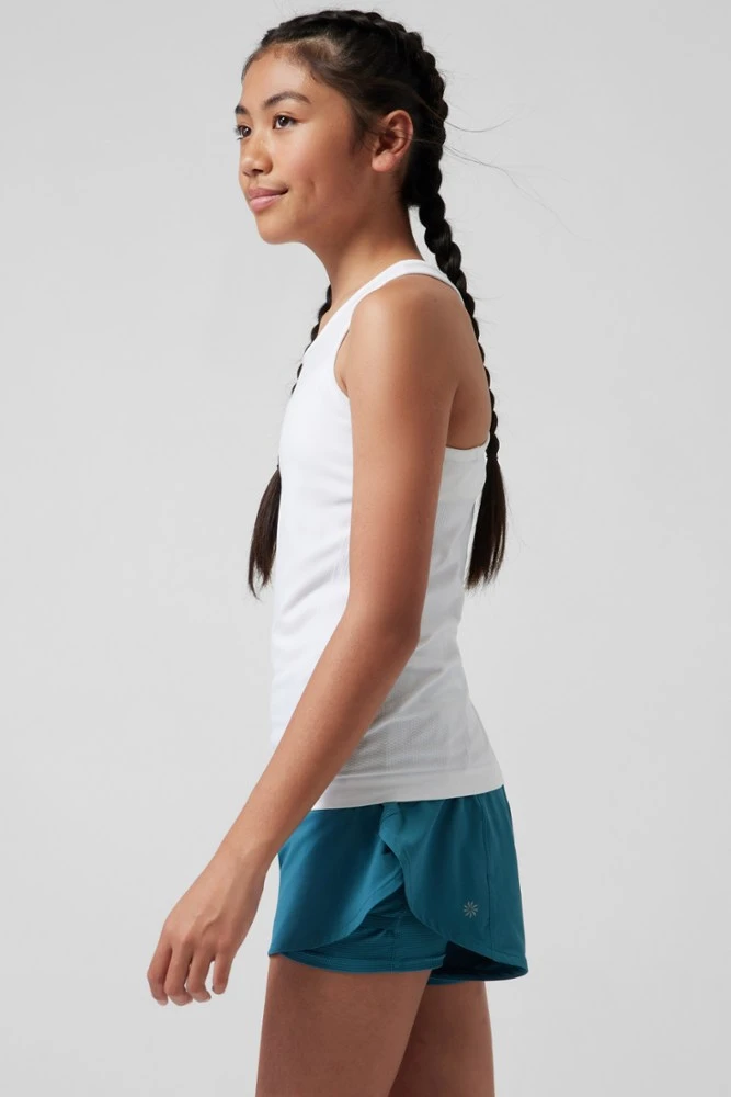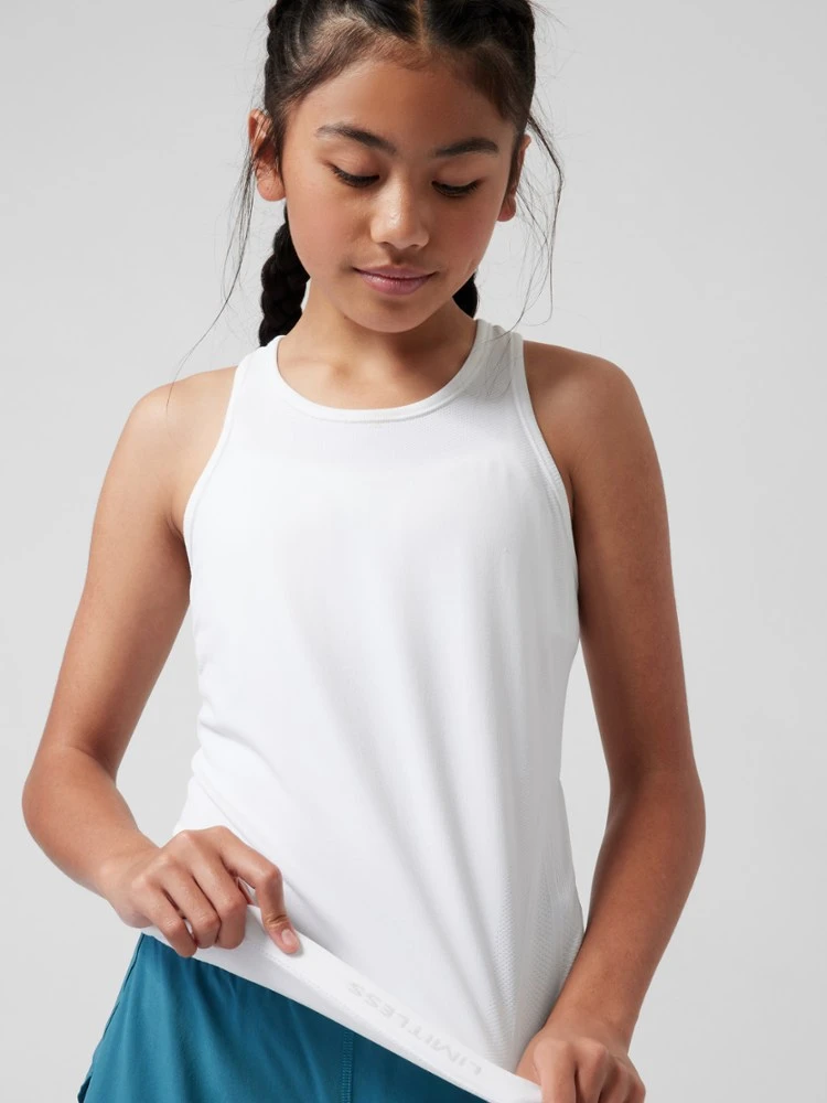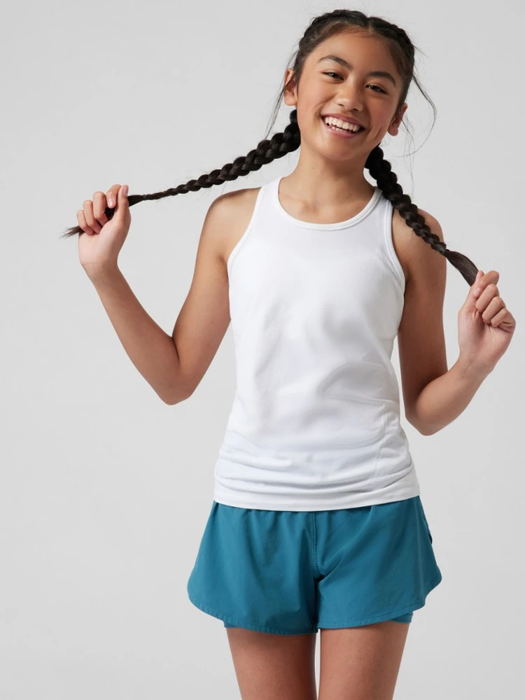 Perfect for layering on cooler days, the girls’ Athleta Power Up tank top is made with nonchafing, seamless fabric that’s stretchy and comfortable.