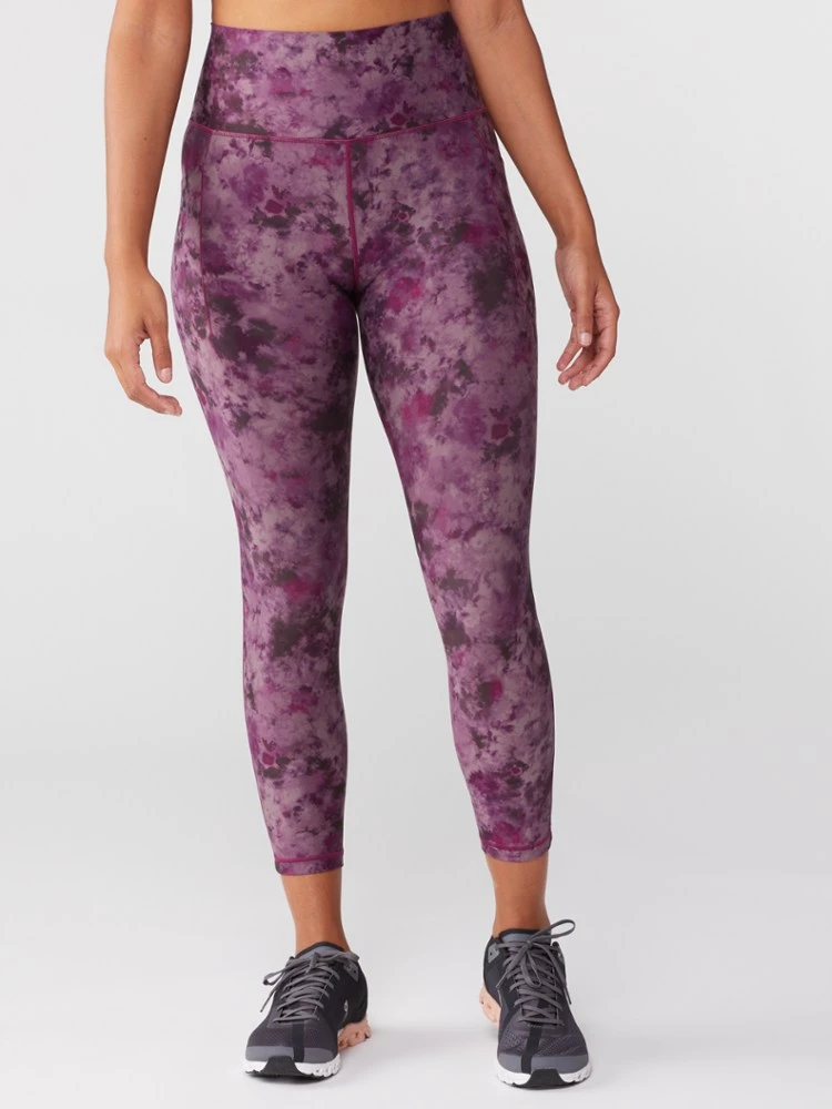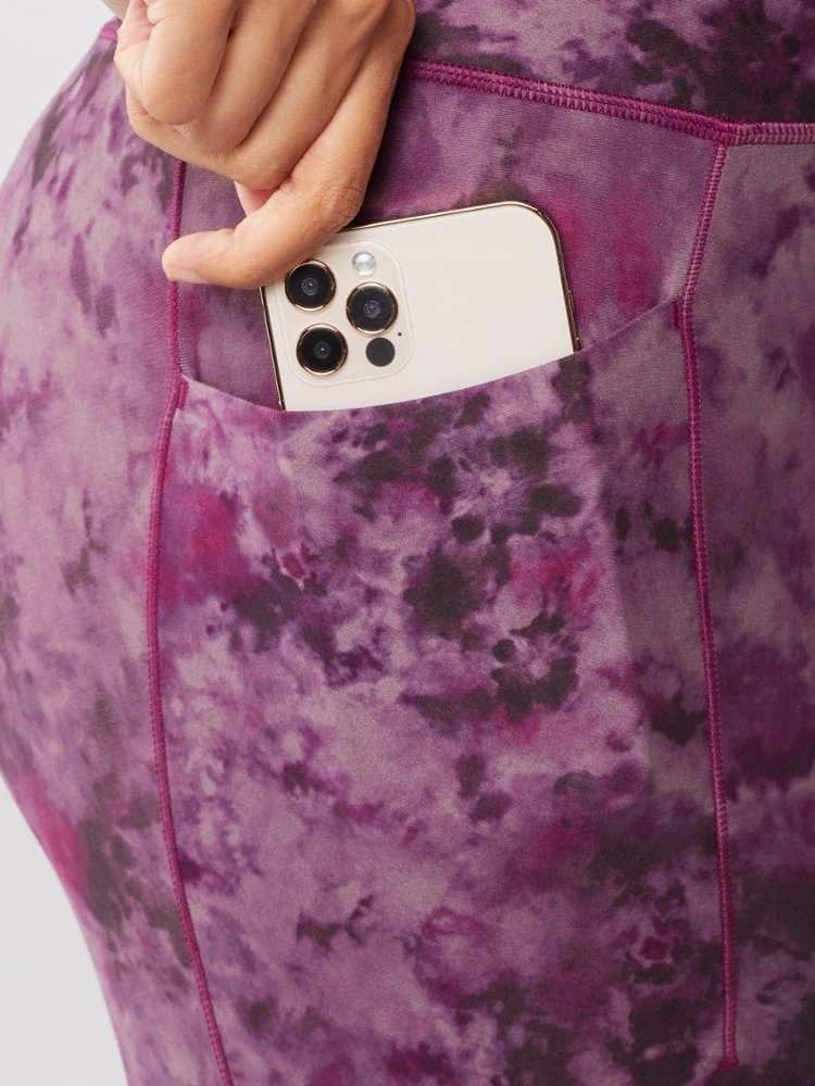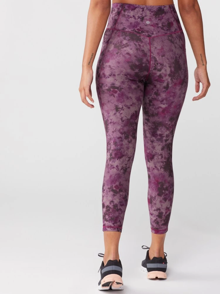 Greet the day in tights that are ready for it. The women’s Athleta Salutation Stash Pocket II Printed 7/8 tights boast soft fabric, a high-rise waistband and fewer seams for more comfort on the mat.
