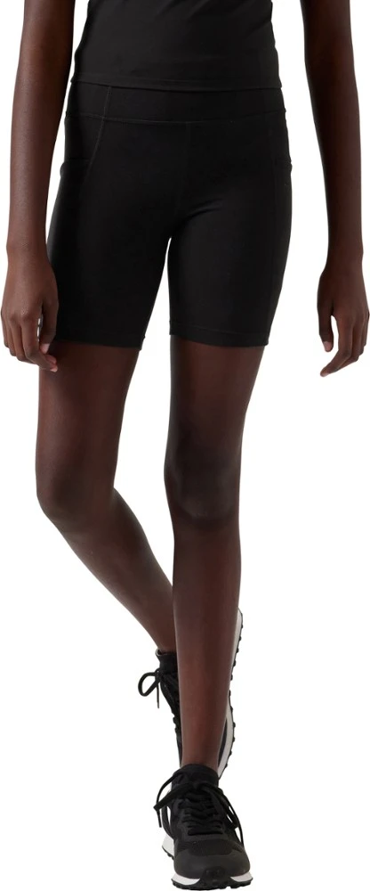 Great for bike commuting to school or heading out on a family hike, the girls’ Athleta Stash Your Treasures bike shorts are quick-drying and breathable to keep up with her on all her adventures.