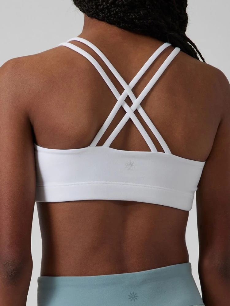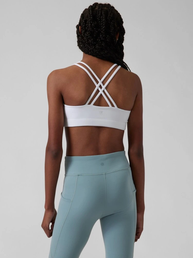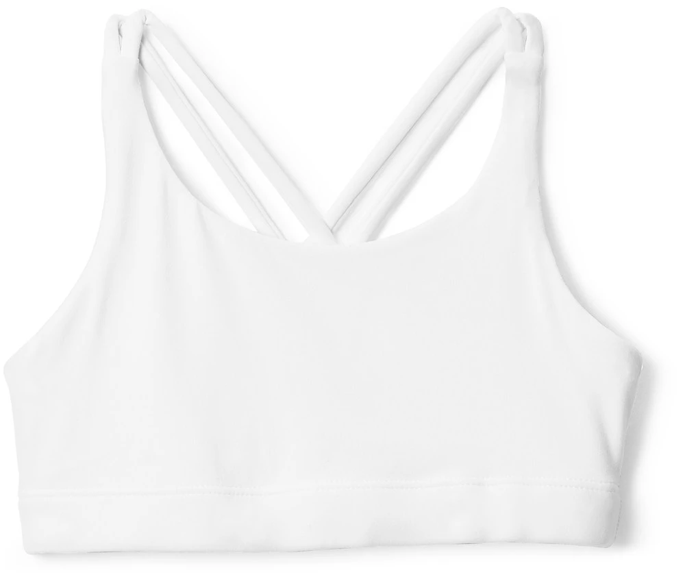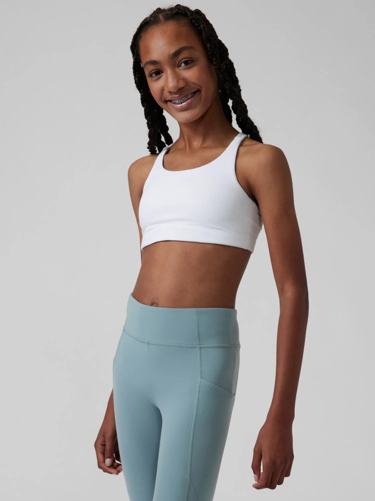 Looking for a cute, functional top with a fun twist? The girls’ Athleta Upbeat bra is supersoft and has stretchy straps that won’t dig into her shoulders when she’s out exploring.