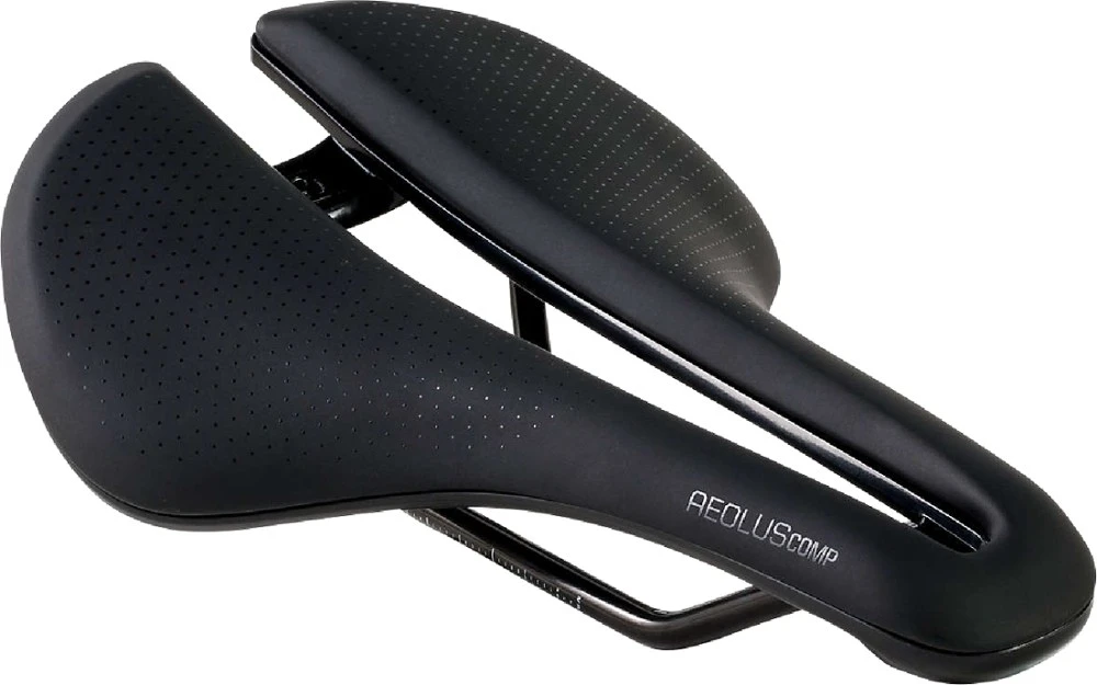 Offering comfort, power and speed to riders looking to dig deep in an aerodynamic road position, the Bontrager Aeolus Comp bike saddle is a go-to choice with a short length, wide nose and full cutout.