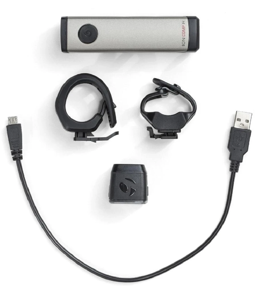 See the road and be seen with the Bontrager Ion Comp R/Flare R City bike light set; 2 compact lights designed to help you stand out to motorists from every direction.