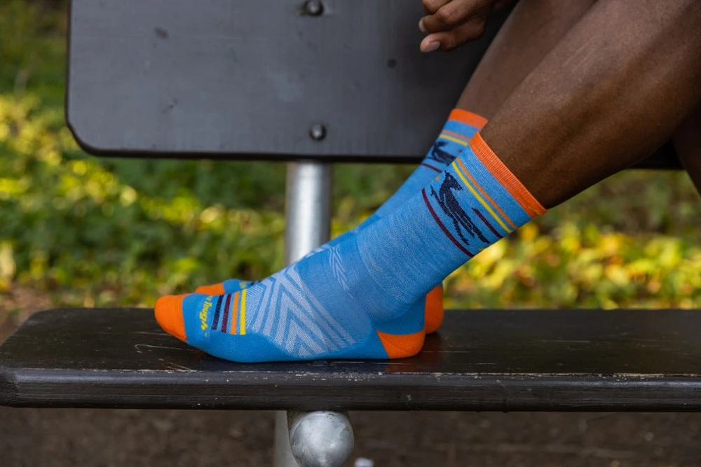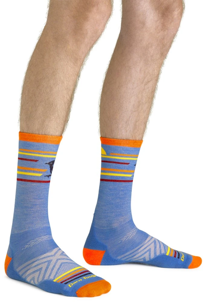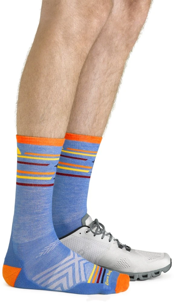 No matter your speed or distance, the men’s Darn Tough Frontrunner Micro Crew Ultralight Cushion socks keep feet comfy and dry with cushioning underfoot, targeted flex up top and breathable vents.