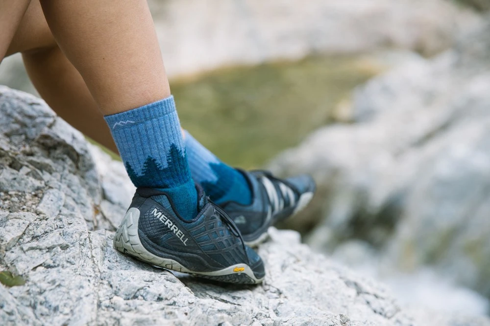 From pines to alpine, the women’s Treeline micro crew socks are trail staples designed with cushy merino wool to absorb impact and minimize moisture so you can make elevation gains.